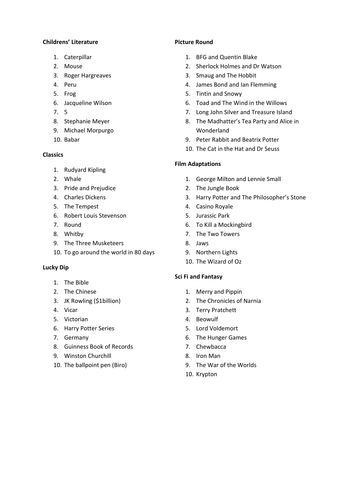 This World Book Day quiz is perfect for the whole family to play. See if you can come out on top in our Blue Peter Book Battles quiz. Freshers General Quiz Quiz.